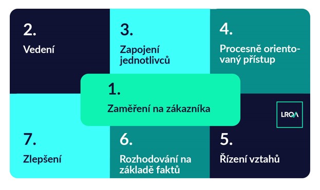 Norma ISO 9001 je založena na 7 základních principech řízení kvality. Níže je uvedeno stručné vysvětlení těchto základních principů. Pokud si chcete přečíst podrobné informace včetně důvodů, výhod a možných opatření, navštivte Česká agentura pro standardizaci.