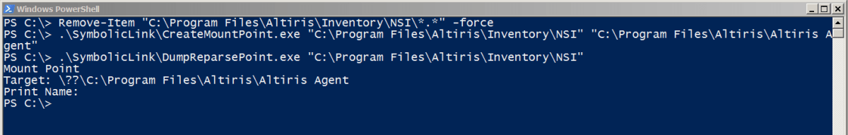 We then created a mountpoint which points to the folder ‘Altiris Agent’. It’s worth noting that this folder must be empty for the redirection to be possible. Since we have full permissions over every file, this was trivial to complete. The mount point was created and verified using James Forshaw’s symboliclink-testing-tools.