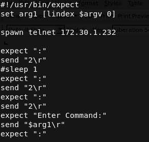 We attempted a few attack vectors manually, but we needed a way to automate things; it was taking too long to manually attempt injection techniques. To do this we generated a custom script using expect. In case you don’t know about expect, the following is taken directly from Wikipedia: