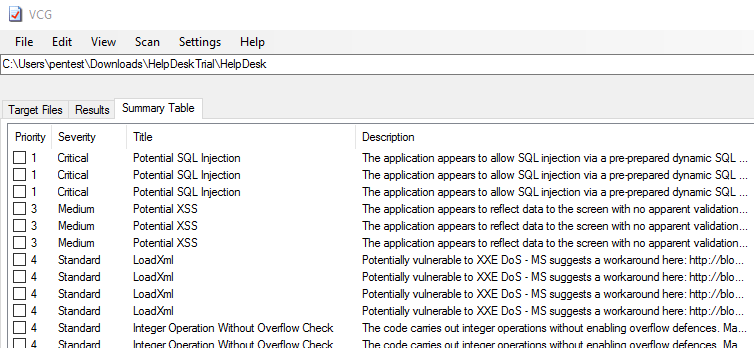 Once the source was exported we quickly ran through it through Visual Code Grepper (https://github.com/nccgroup/VCG) which: