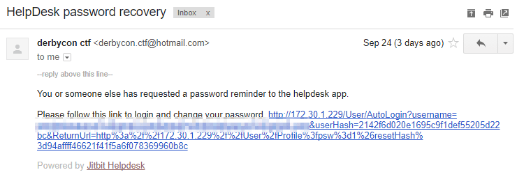 So, by creating an account and then triggering a Forgotten Password for that account, we received this email.