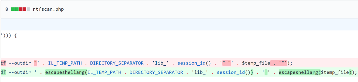 Looking at the diff of changes for the “escape shell arguments” change we can see that this change was to call escapeshellargs() on two parameters that are passed to the exec() function (http://php.net/manual/en/function.exec.php).