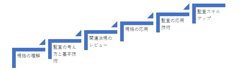 オプションで理解度テストを付けることができます。また、以下は、内部監査員向けのeラーニング及びライブの研修コースをいくつかの段階で計画したときのイメージです。これ以外に、たとえば、チェックリスト作成のグループ演習やチュータード・オーディット、ワークショップを組み合わせるなどさまざまな調整が可能です。回ごとの時間を考慮して2回分を1回にしたり、テーマを入れ替えたりすることもできます。詳しくは弊社までお問い合わせください。