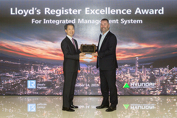 10월 14일, 종로에 위치한 현대건설 본사에서 아주 뜻깊은 자리가 마련되었습니다. 우리나라 건설산업을 선도하는 현대건설이 로이드인증원의 통합경영시스템 우수기업으로 선정되어 기념식이 진행되었습니다. 직접 상패를 수여하기 위해 LRQA 영국 본사의 Managing Director인 Paul Butcher님이 현대건설 본사를 방문하였습니다.