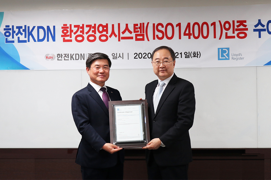 한전KDN, ISO 14001 (환경경영시스템) 인증수여식 개최.