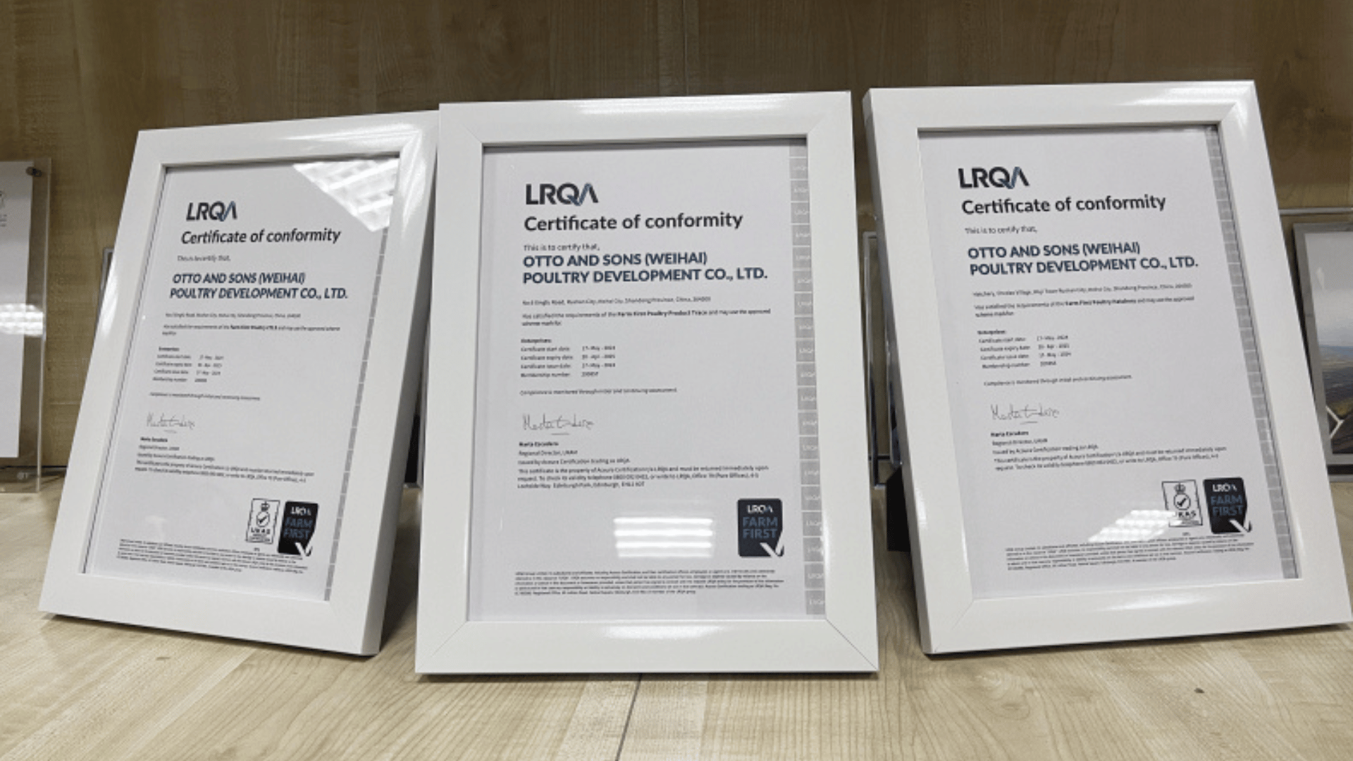 LRQA는 미국 OSI 그룹의 자회사인 오토 앤 선즈 (Otto and Sons (Weihai) Poultry Development Co., Ltd) 에 중국 내 최초로 팜 퍼스트 (Farm First) 인증서를 수여했습니다.