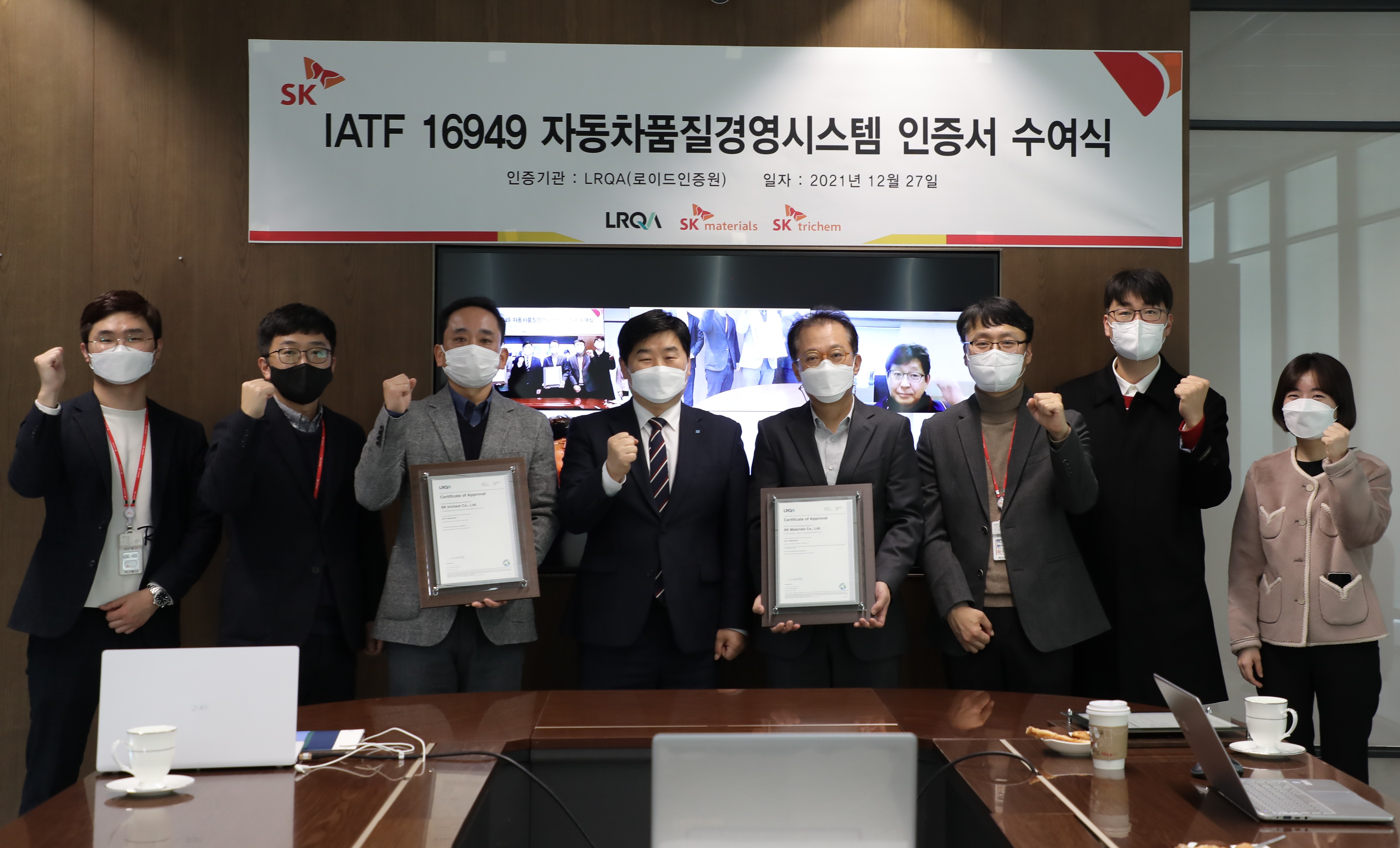 SK머티리얼즈 와 SK트리켐이 자동차 품질 경영시스템  IATF 16949 를 LRQA로부터 인증 획득하였습니다.