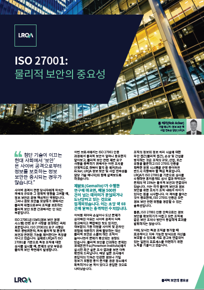 LRQA의 정보보안 기술 매니저인 Rob Acker는 ISO 27001 인증 취득에 있어, 물리적 보안의 중요성을 적극 강조하며 규정 준수를 위해 필요한 단계들을 설명했습니다.